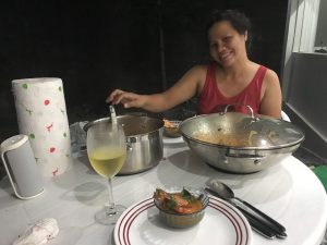Christy erzählte dann etwas…. Zuerst von dem Weihnachtsessen in der Firma. Es gibt ein Budget über 4000 Pesos für ca. 30 Leute. D.h Chicken und dann freier Reis und limited Cola für alle! Wow!