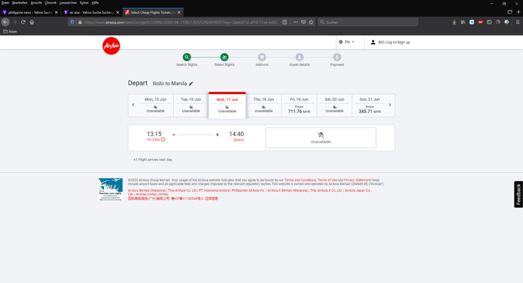 Ihr könnt ja selbst mal sehen: Flug Z2 310 Air Asia 13:15 17.6. ab Iloilo nach Manila.