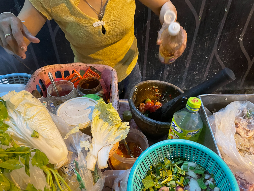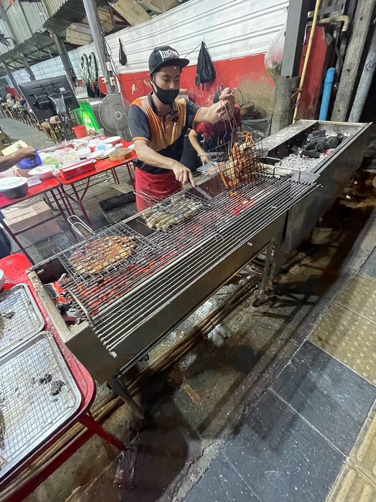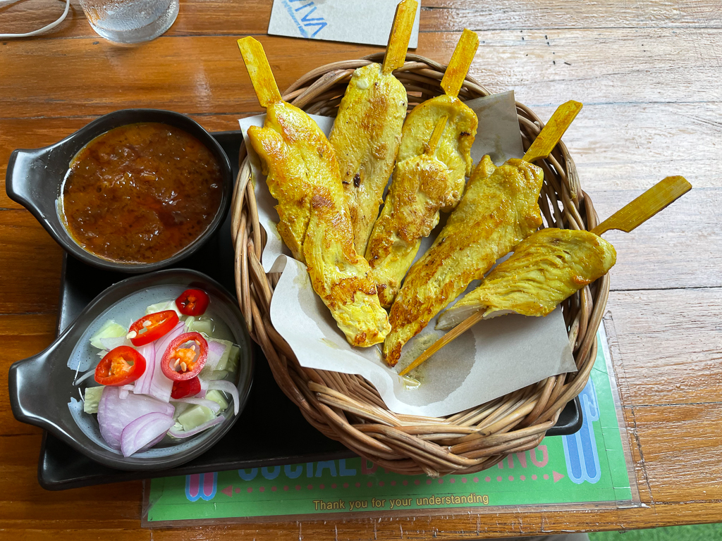 Nach dem Termin mit Nui brauchte ich etwas Stärkung und ich einen kleinen Snack: Satay-Chicken, Also Chicken in Erdnussoße eingelegt und dann gegrillt…dazu eine eher süße Erdnussoße und eine saure scharfe als Kontrast…himmlisch…