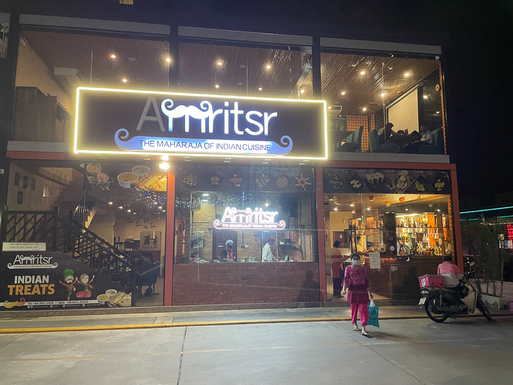 Abends war ich dann bei einem indischen Restaurant: Amristr. Ich liebe indisches Essen, fast so wie Thai. Ich bestellte ein Thali, das ist eine Mischung von verschiedenen Speisen auf einem Teller. Man sieht Brote (Naan und Popadoms), ein Linsengericht, Hähnchen Curry, Kichererbsen, Raita (Joghurt mit Gurke), Reise, Minzsoße und ein Zwiebelchutney. Und das alles für 400 Bath, ca. 11 €…himmlisch…
