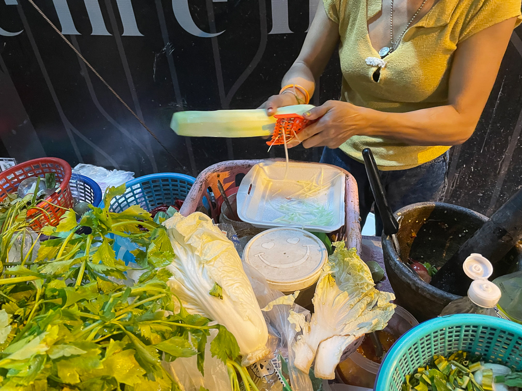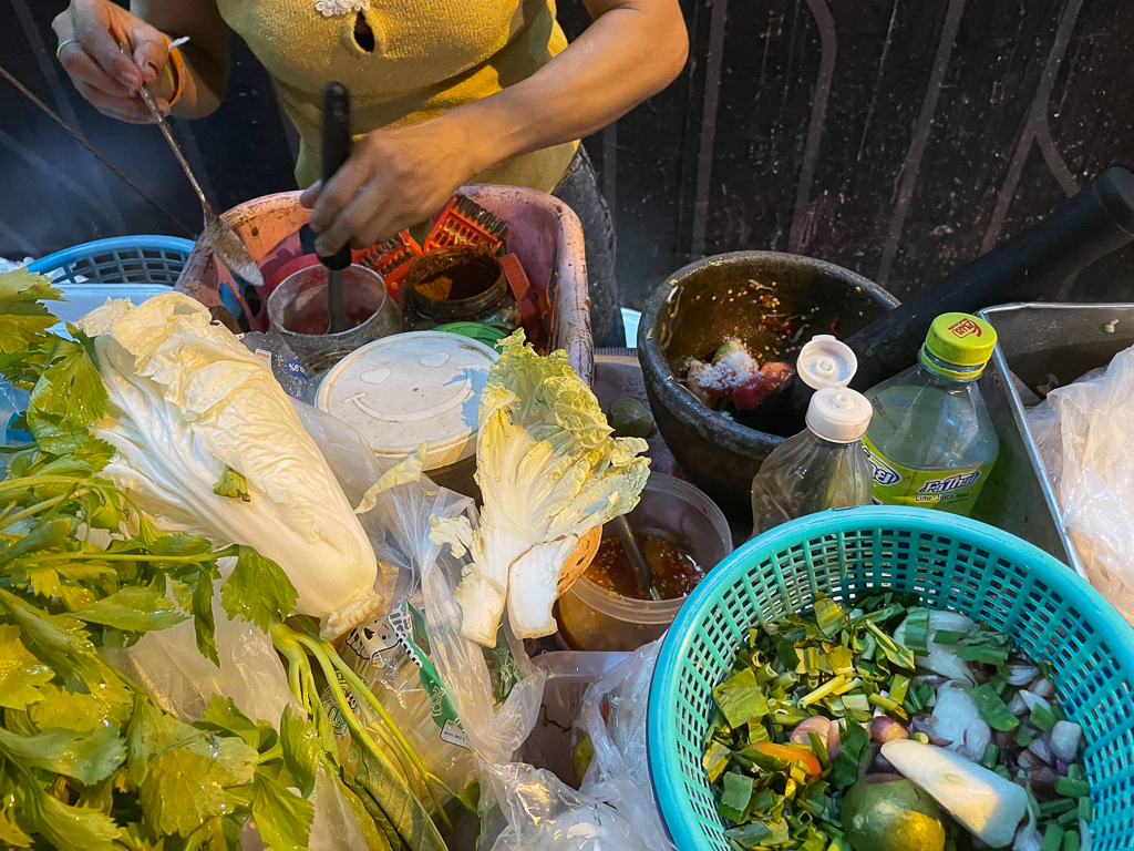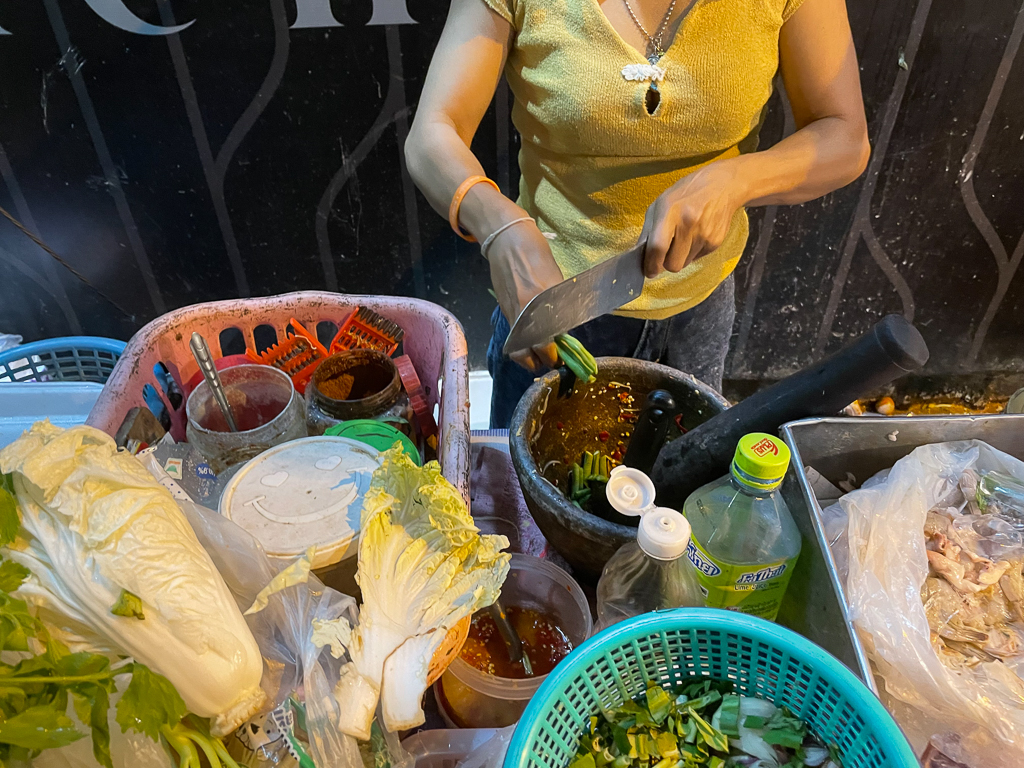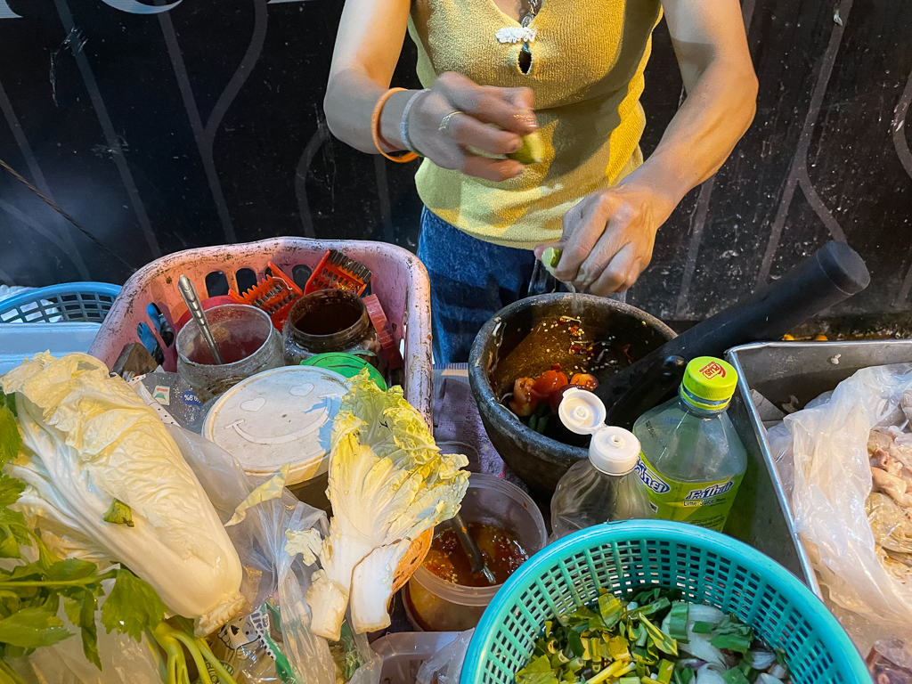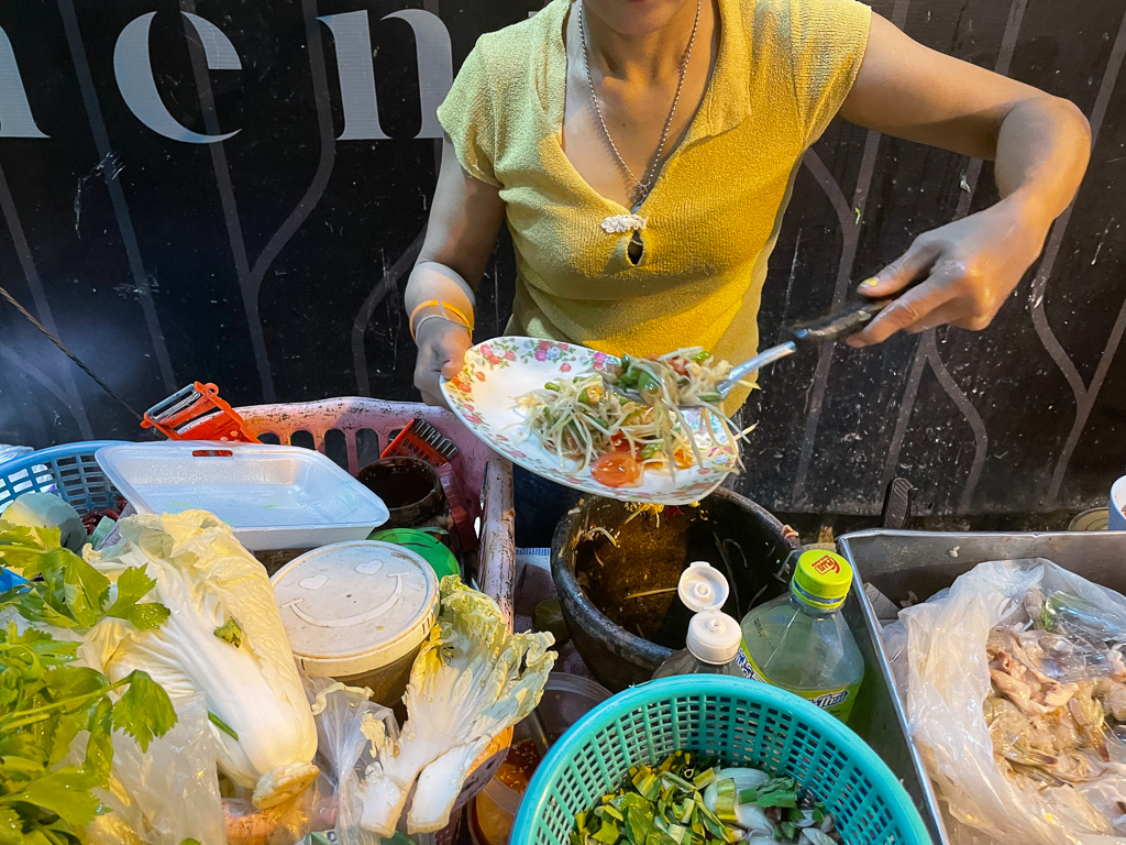 Sie hat mir noch einen Som Tam zubereitet, ein Papaya Salat, der höllisch scharf sein kann. Man sieht auf den Bildern die einzelnen Schritte der Herstellung.