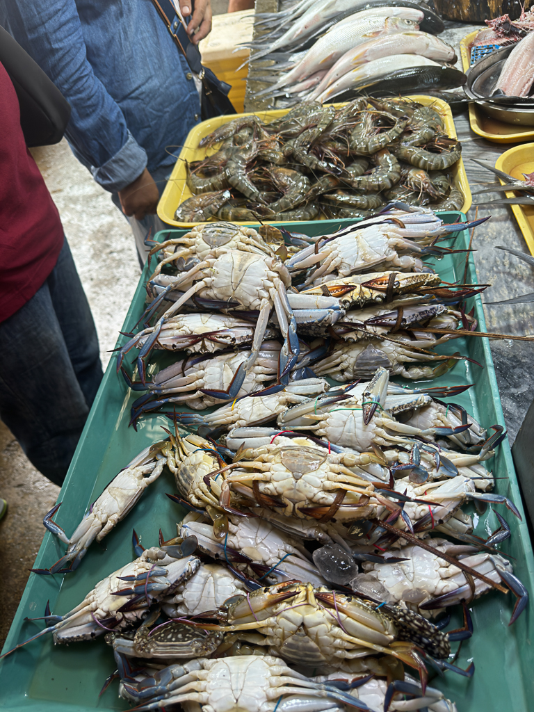 Der Fisch ist schon fast ausverkauft, hätte ich Fisch haben wollen, so muss man da um 7:00 auflaufen. Man sieht auch Tangnester und allerlei Meerestiere. Aber morgen haben wir einen Gast und es gibt Chicken Tikka mit Reis und Salat.